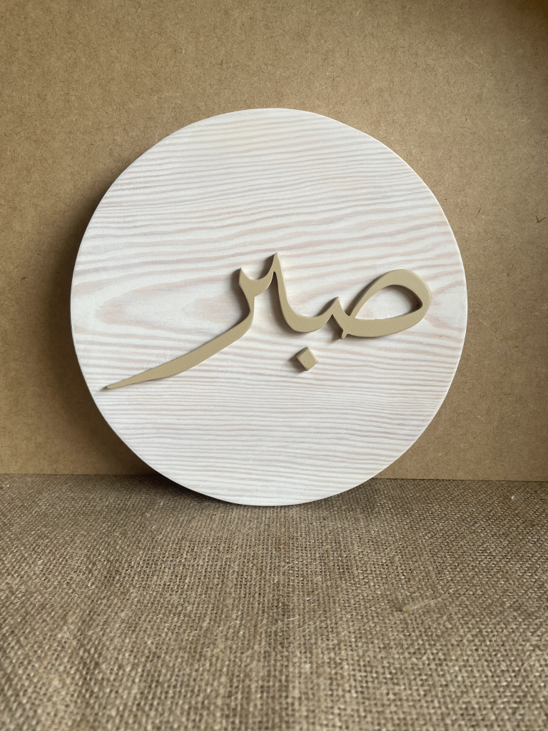 Buy NowThis handmade wooden ‘Sabr’ plaque brings Arabic calligraphy to life in beautiful 3D detail, carved into solid wood. Crafted entirely by hand, each piece carries its own unique grain and character, making it truly one of a kind.
